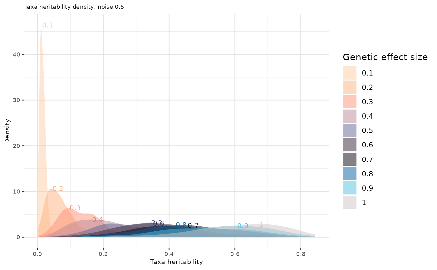 #ggplotly(p2) easier to navigate on this plot with ggplotlyBased on the Zang et al. (2022) expectations, a reasonable distribution of taxa heritabilities appears to correspond to a value of in the case of Déru et al. (2020) dataset.